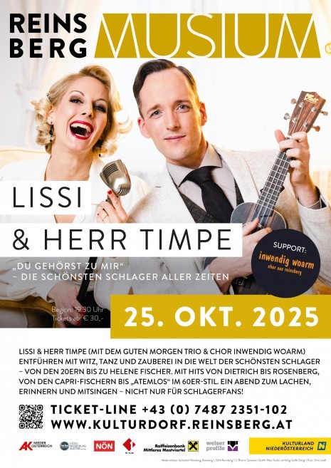 In ihrer neuen Show interpretieren Lissi & Herr Timpe nicht nur die unvergessenen Klassiker von Marlene Dietrich und Heinz Rühmann bis Marianne Rosenberg und Udo Jürgens, sondern wagen auch spannende Experimente: Wie würde „Atemlos“ wohl klingen, hätte es bereits Caterina Valente in den 60er Jahren gesungen?