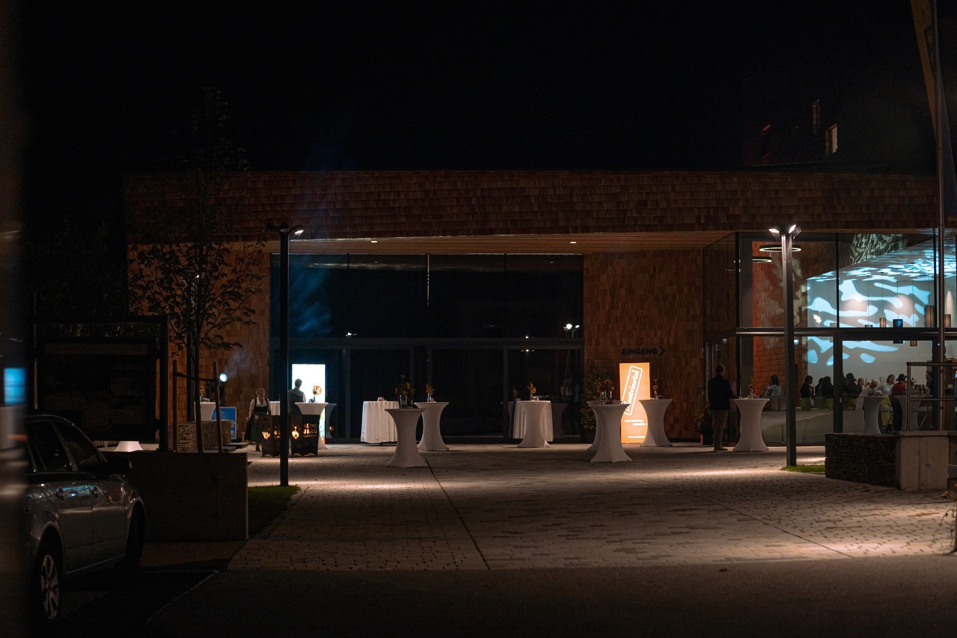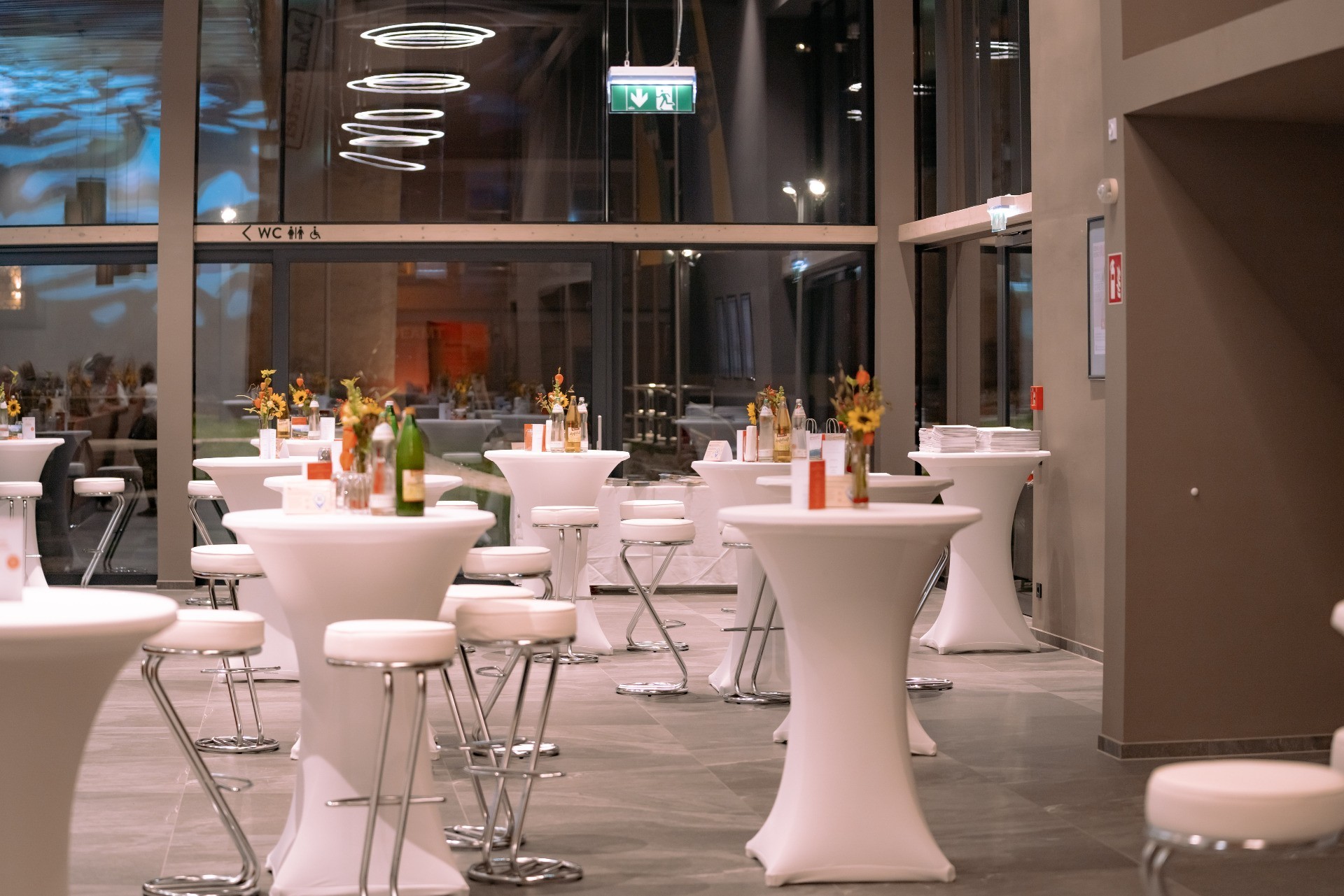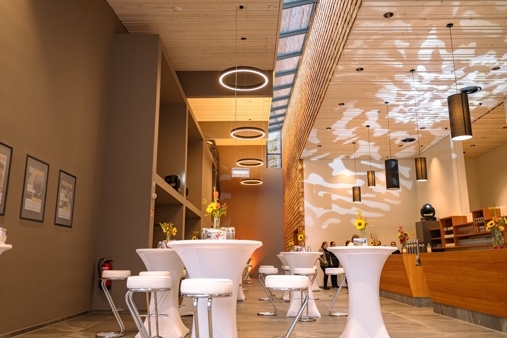 Das Foyer unseres Musiums bietet mit seiner hellen Glasfront zum Dorfplatz und dem großzügigen Schankbereich den idealen Rahmen für Ihre Feier. Die einladende Atmosphäre und das stilvolle Ambiente machen Ihr Event zu einem unvergesslichen Erlebnis.