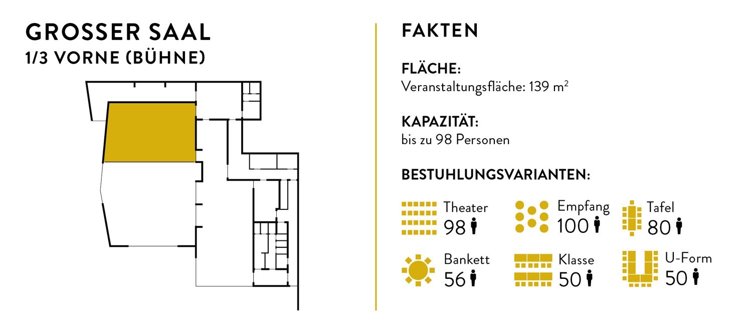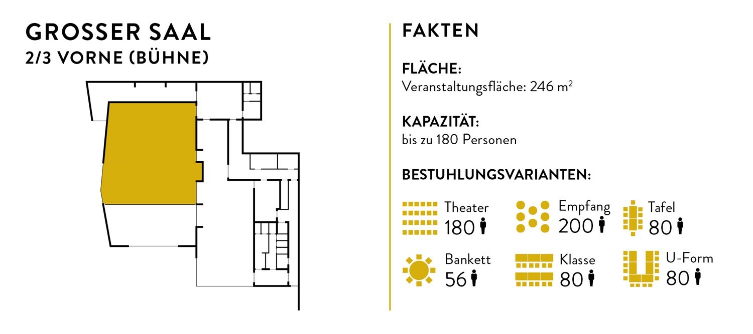 • Gesamtfläche (inkl. Hinter- & Nebenbühne): 470 m²