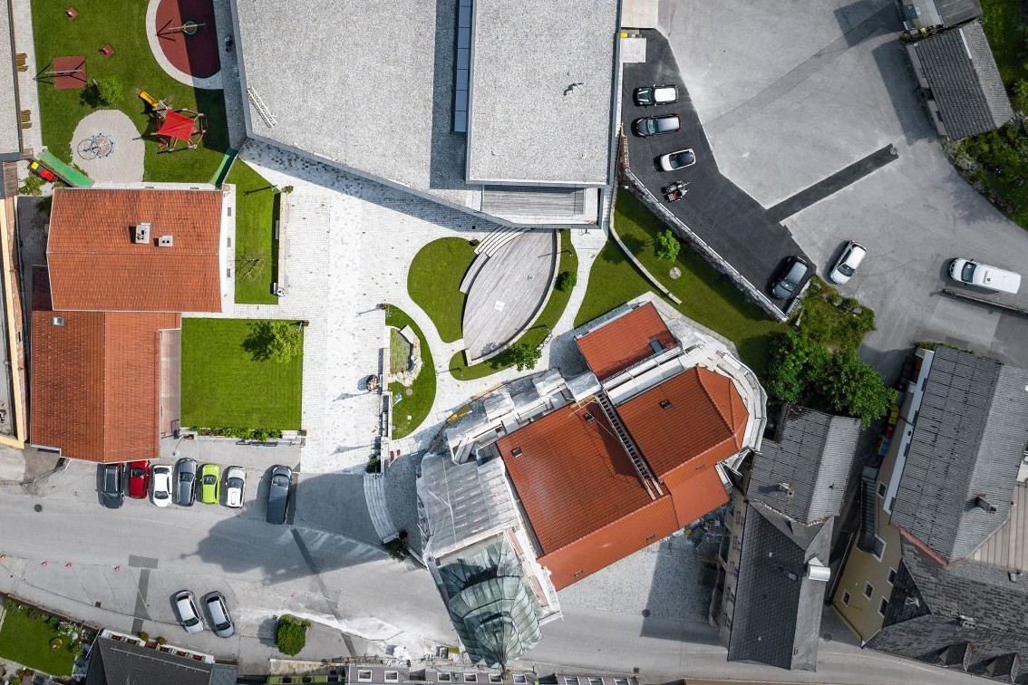 In Zusammenarbeit mit der Bevölkerung und unter Berücksichtigung der örtlichen Gegebenheiten wurde ein Konzept für einen multifunktionalen Dorfplatz zwischen Kulturzentrum und Pfarrkirche entwickelt. Der Platz sollte sowohl für kirchliche Anlässe als auch für Feste und private Zusammenkünfte nutzbar sein.
