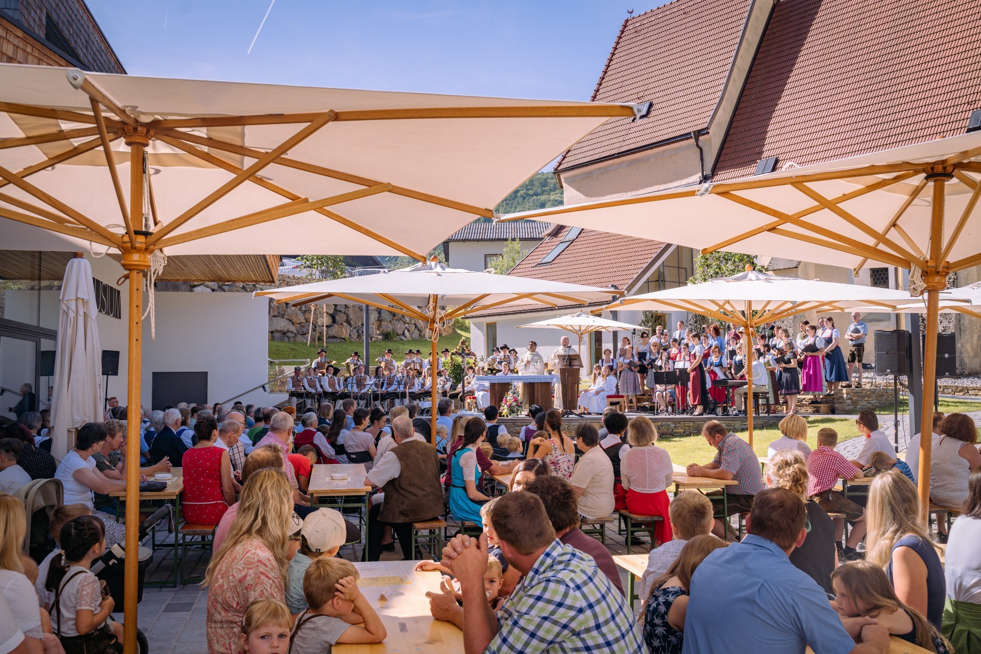 Der Dorfplatz wurde im Juni 2022 eröffnet und ist seither ein beliebter Treffpunkt für Jung und Alt. Er wird von der Pfarre, der Gemeinde, den Gästen des MUSIUMs und allen Bewohnerinnen und Bewohnern Reinsbergs gerne genutzt.
