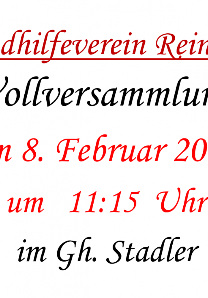 Vollversammlung 8. Februar 2026 11:15 Uhr in Gasthaus Stadler