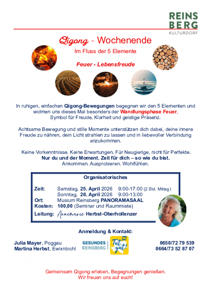 | Sa. | 25. - 26. | Qigong Wochenende - Im Fluss der 5 Elemente |
